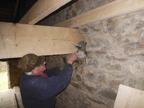 der dritte Dachbalken wird eingesetzt